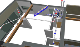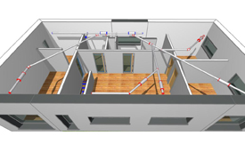 > Sur plan, on détermine les zones d'extraction (cuisine, WC, salle de bain et locaux techniques) ; les zones de soufflage (zones de vie, chambres…) et enfin les zones de transfert (zones de circulation des flux d'air). on établit un tableau de planification qui permettra de régler précisément les débits de soufflage ou d'extraction de chacune des bouches du réseau.