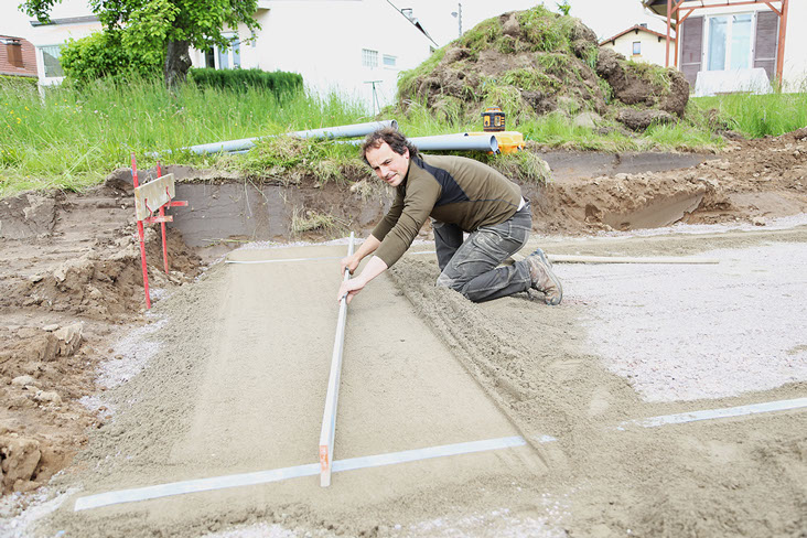 Préparation de la plate-forme qui recevra la maison passive.